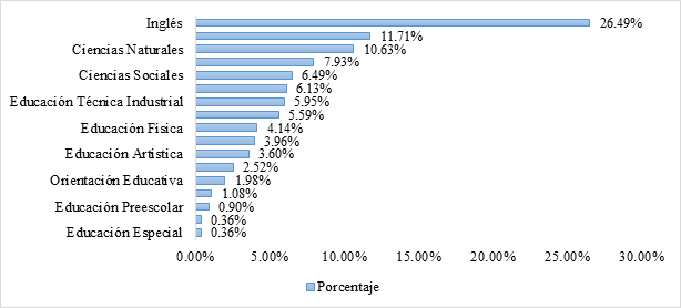 Estos resultados evidencian una diversidad de intereses entre los estudiantes, orientados hacia disciplinas que tienen una clara aplicación pedagógica, pero que también reflejan preferencias personales y percepciones sobre el mercado laboral. De acuerdo Laschke y Blömeke (2016), las aspiraciones profesionales de los futuros docentes no solo están determinadas por la vocación educativa, sino también por la percepción de empleabilidad y las oportunidades que ofrece cada especialidad dentro del sistema educativo. Así, el interés por el Inglés puede explicarse por su alta demanda en el mercado laboral nacional e internacional, y por el reconocimiento social que tiene como una competencia clave en la educación contemporánea (British Council, 2015).