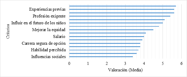 Criterios de atracción hacia la carrera docente según motivaciones, influencias y percepciones (Media)